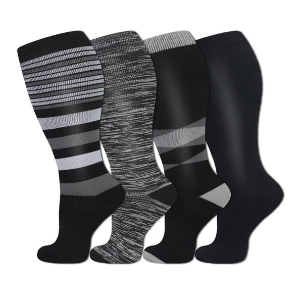 4 Pairs Plus Size Striped Compression Socks